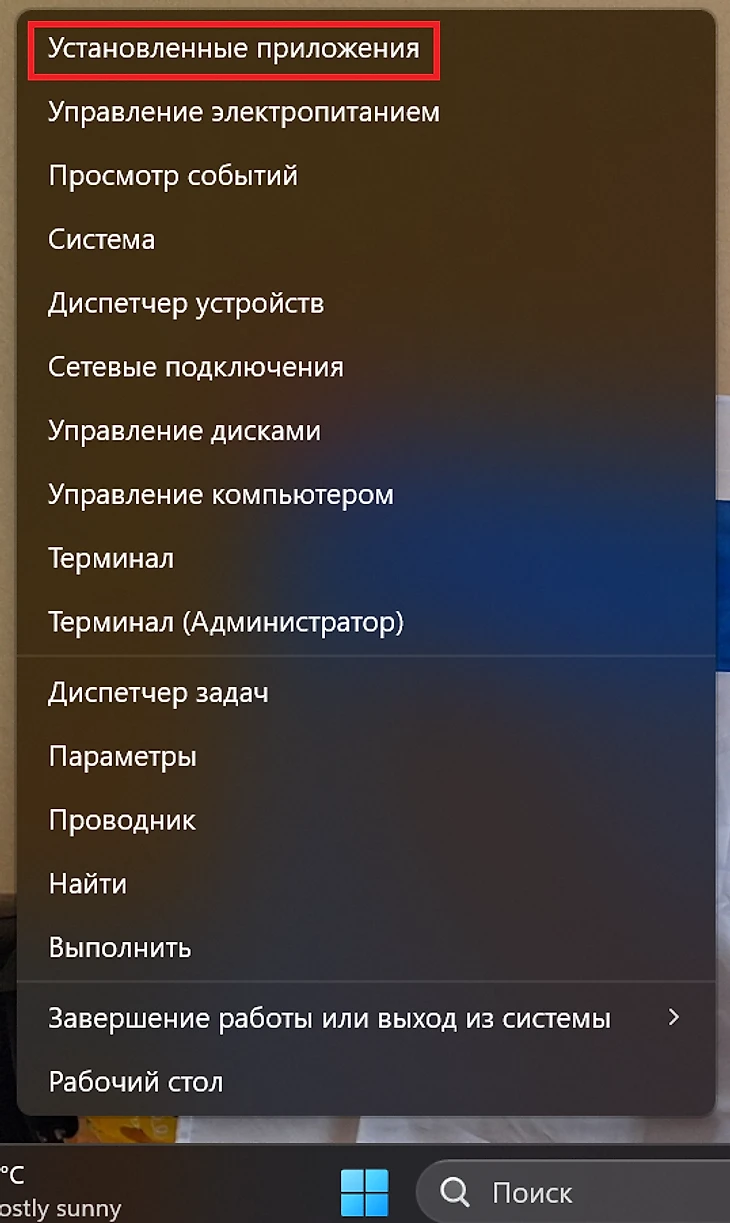Кликните правой кнопкой мыши по значку «Пуск». Выберите «Установленные приложения».