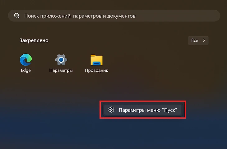 Кликните правой кнопкой мыши по меню Пуск. Выберите «Параметры меню «Пуск».