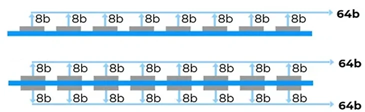 Если коротко: Увеличение битности напрямую увеличивает пропускную способность памяти даже при той же частоте, позволяя передавать больше данных за один такт.