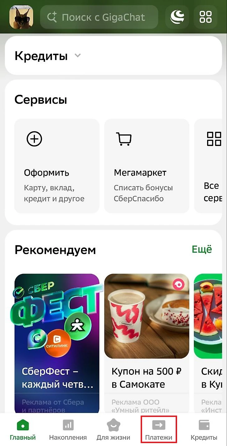 Войдите в банковское приложение, выберите раздел «Переводы» или «Платежи».