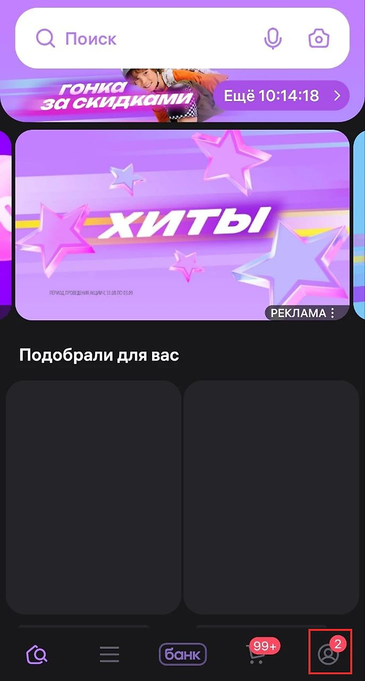 Перейдите в раздел «Профиль» и найдите «WB Банк».