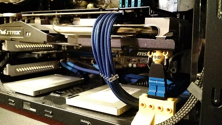 Поэтому для тяжелых видеокарт обязательно используйте специальные подпорки. Поддержка не только защитит ваш ПК, но и улучшит внешний вид сборки, предотвратив провисание, которое особенно заметно в корпусах с прозрачной боковой стенкой.