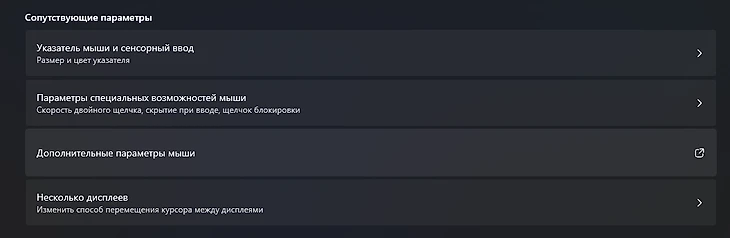 Перейдите в раздел «Специальные возможности» и найдите в списке пункт «Указатель мыши и сенсорный ввод».