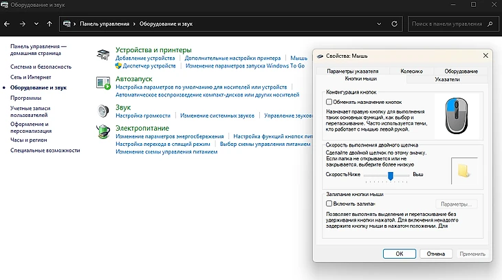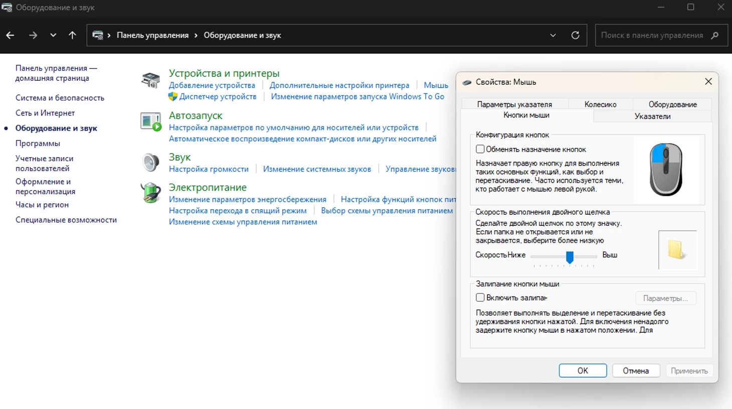 Нажмите кнопку «Применить» и закройте окно свойств мыши.