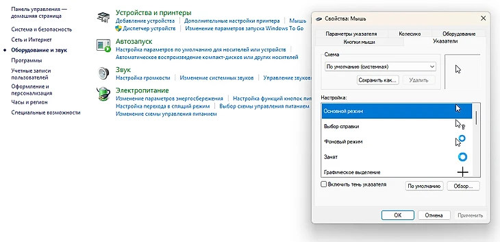 В разделе «Настройка» дважды кликните левой кнопкой мыши по иконке курсора, который вы хотите заменить.