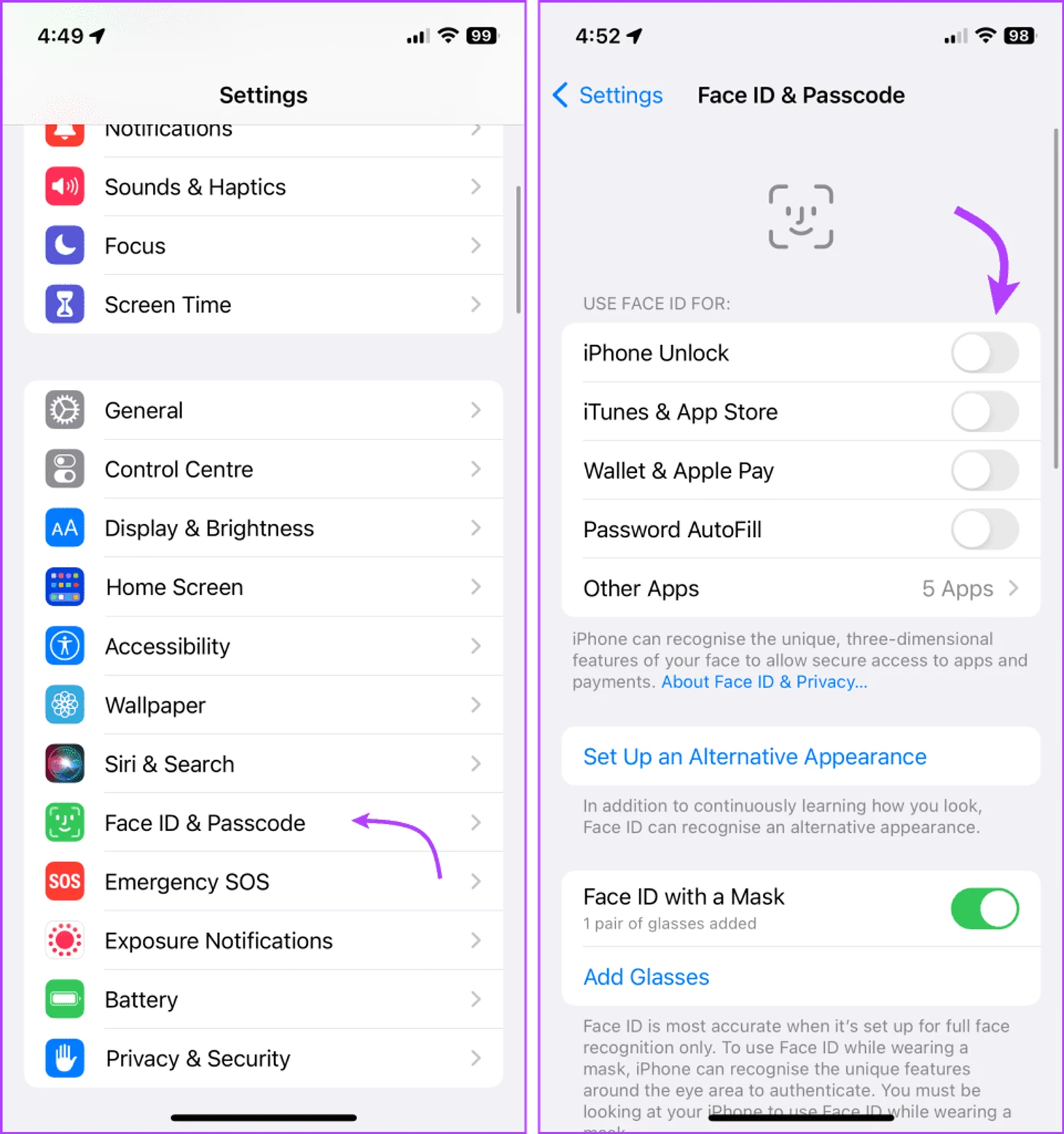 Перейдите в «Настройки», «Face ID и код-пароль» и введите свой пароль.