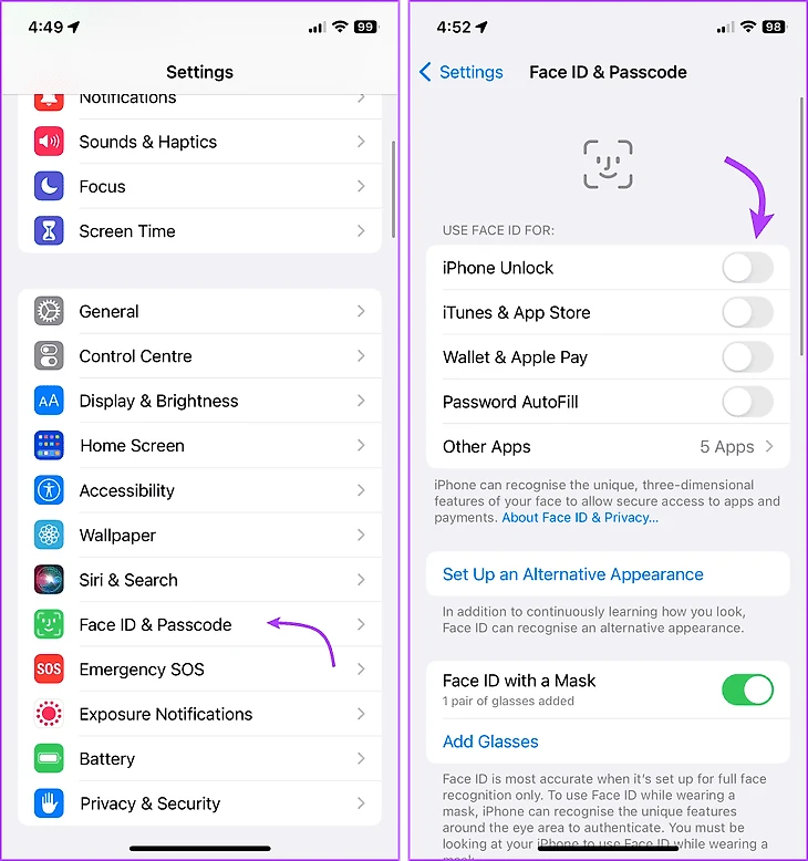 Перепроверьте Face ID/Touch ID. Если биометрия не срабатывает, перейдите в «Настройки» и перенастройте данные лица или отпечатка пальца.
