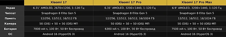 • Xiaomi 17 Pro – от 4 999 юаней (~ 58 500 ₽);
