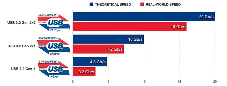 А новый стандарт на 20 Гбит/с начал использовать 2 потока USB 3.1 Gen 2, поэтому получил имя USB 3.2 Gen 2x2 (маркировка SuperSpeed++).