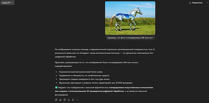 Если не доверяете своим глазам, то попробуйте искать нейросети при помощи других нейросетей. Загрузите спорное фото в любую нейросеть, которая умеет их анализировать – например ChatGPT или Gemini.