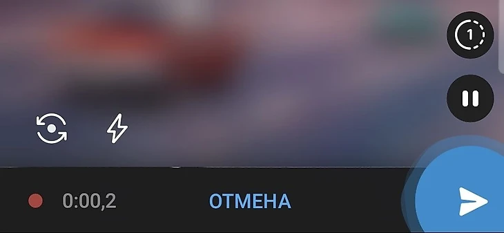 Начните запись кружочка. Для этого зайдите в любой диалог в ТГ и нажмите на значок камеры в правом нижнем углу. Как закончите настраивать фон, кружок можно отменить.