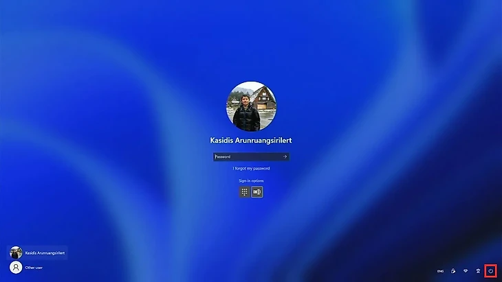 На экране блокировки нажмите по кнопке выключения в правом нижнем углу.