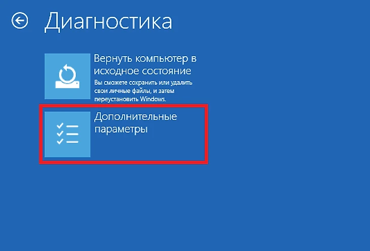 Нажмите «Параметры загрузки», а затем – кнопку «Перезагрузить».