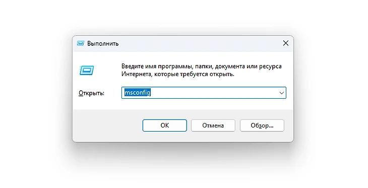 Нажмите клавиши Win + R на клавиатуре или нажмите правой кнопкой мыши по кнопке «Пуск» и выберите пункт «Выполнить». Введите msconfig и нажмите Enter.