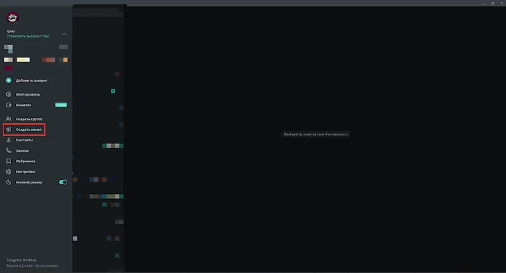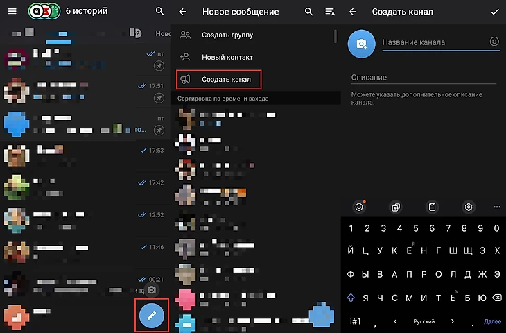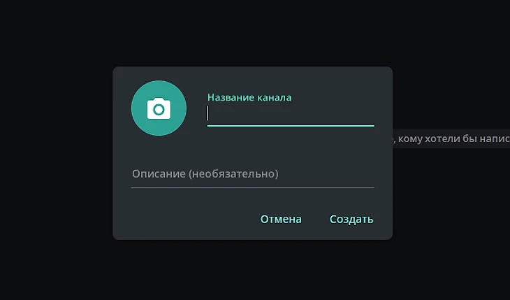 Нажмите на значок карандаша появится меню для создания нового чата или канала. В открывшемся меню выберите пункт «Создать канал».