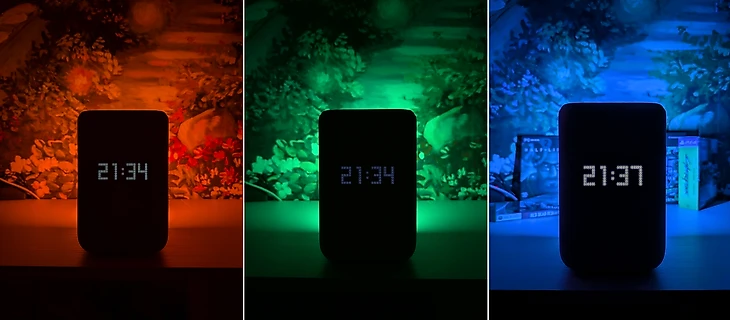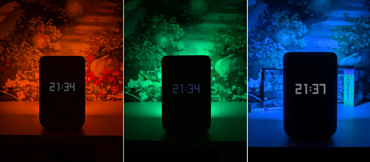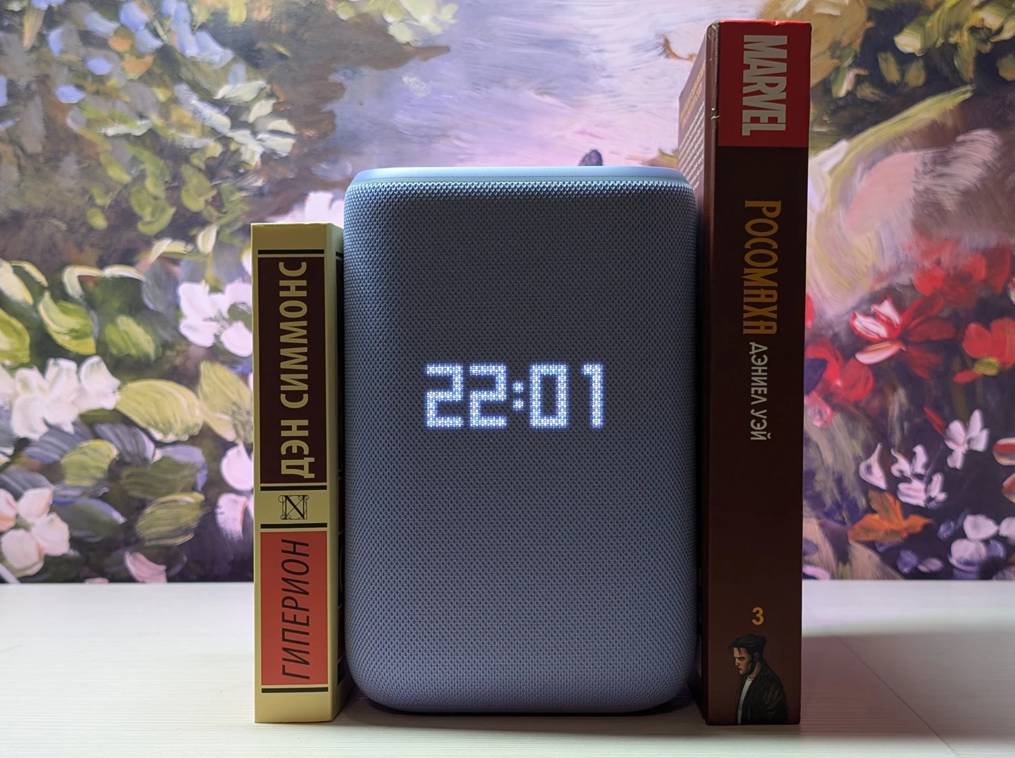 Спереди в Станцию 3 добавили пиксельный LED-дисплей, знакомый владельцам Станции Макс. В состоянии покоя экран показывает текущее время, а во время общения с Алисой отображает специальную анимацию. Еще по запросу на экранчик можно выводить температуру воздуха и анимированные облака или солнце.