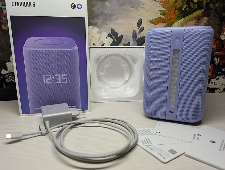 На известный вопрос героя Бреда Питта из х/ф «Семь» в данном случае ответить просто. В комплекте с умной колонкой положили инструкцию, адаптер и кабель Type-C. Негусто, но большего как будто и не надо.