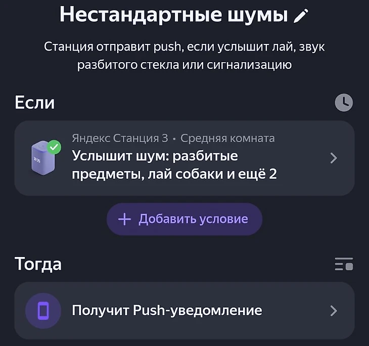 Одной из новых функций Станции 3 стал детектор шума. Колонка умеет распознавать разные звуки и запускать сценарии умного дома на их основе. Например, можно хлопнуть в ладоши, чтобы включить свет. Также она реагирует на щелчок пальцем, плач ребенка, шум воды, вой сигнализации, разбитое стекло, лай собаки и мяуканье.