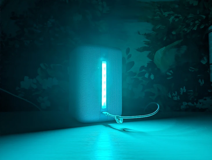Собственно, это основная и заметная фишка новой Станции. На задней стенке колонки расположились 12 светодиодов. Отсюда следует, что лучше всего Станцию 3 ставить не вплотную к стене, а на небольшом расстоянии – так лучше всего заметны эффекты подсветки. Вместо цветного пятна колонка изобразит нам чуть ли не живой фон на стене. Так вайбовее.