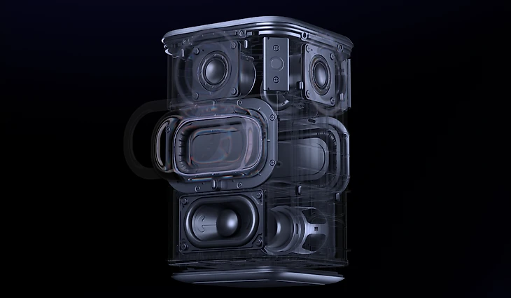 2 оппозитных низкочастотных динамика по бокам. Отвечают за объемный бас без вибраций корпуса.