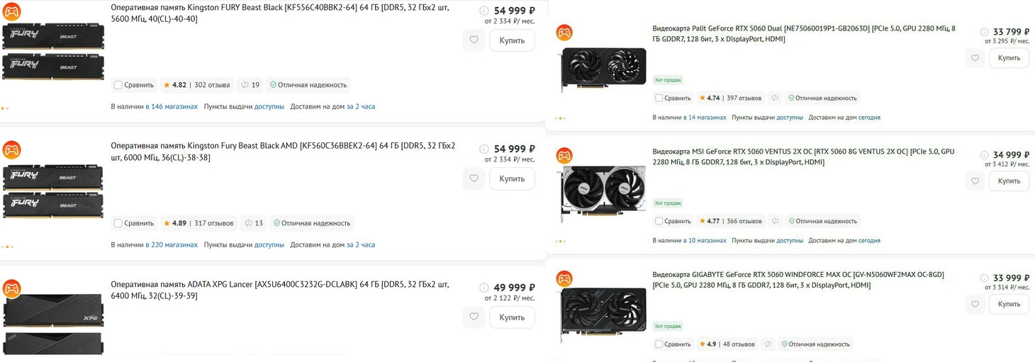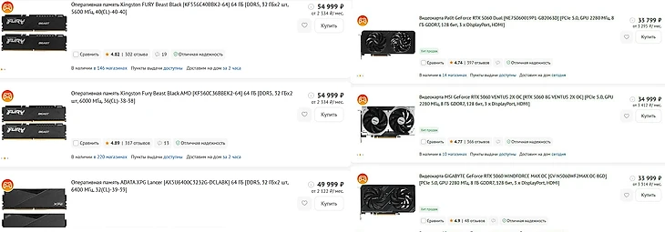 Наборы на 64 ГБ DDR5 уже обогнали по стоимости бюджетную игровую видеокарту RTX 5060.