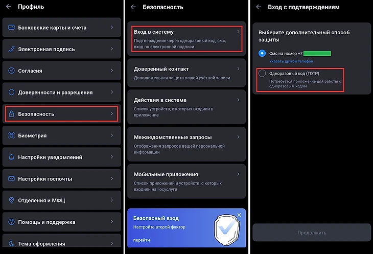 Принудительное подключение мессенджера пока отсутствует при входе на Госуслуги через браузеры на ПК и мобильных устройствах (в режиме «версии для ПК»), а также не зависит от наличия у пользователя аккаунта в мессенджере. Поэтому с новой «фичей» в мобильном приложении Госуслуг сталкиваются как зарегистрированные пользователи мессенджера, так и те, кто не регистрировался там ранее. Чтобы обойти требование, настройте двухфакторную аутентификацию – это просто и удобно. Как это сделать: