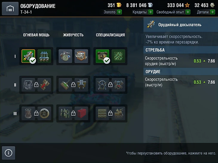 Детали стоит беречь как зеницу ока. Оборудование необходимо на высоких уровнях, но если деталей мало, то стоит откладывать их только на десятки. Тем более, на низких уровнях оборудование стоит практически столько же, сколько на высоких. Но первый уровень оборудования, который качается за серебро, обязателен к открытию. Особенно досылатель и просветленная оптика.